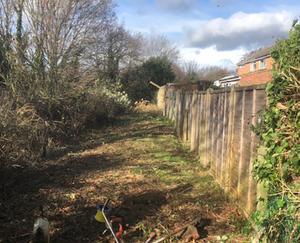 The customer had received complaints from residents of neighbouring properties which backed onto their land. The bramble and shrub had become overgrown and intruding into neighbouring gardens as well as potentially damaging the fence line.